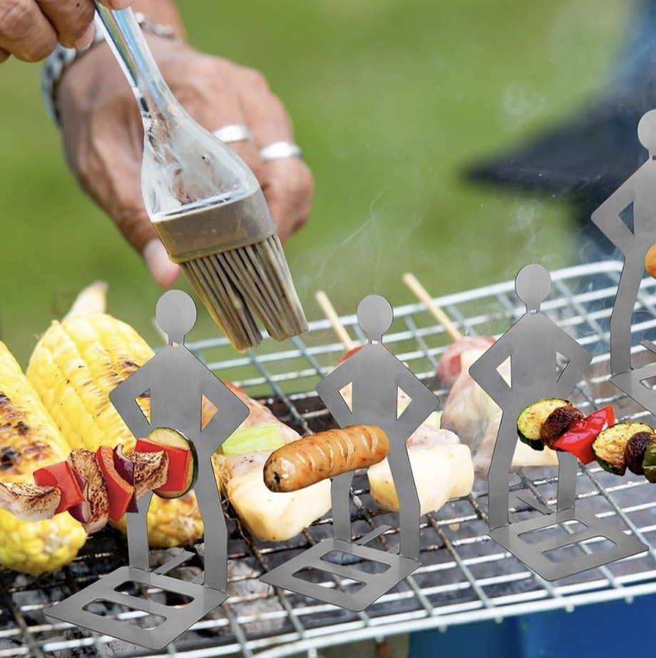 Geef je barbecue een flinke dosis humor met dit poppetje dat trots je worst of wortel presenteert als z’n edele deel. Perfect voor feestjes waar het eten net zo hard lacht als jij.